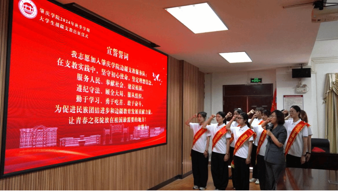 仪式上,欧洪湛向支教服务队颁发证书、赠送爱心礼包并授旗。第五批援疆支教指导教师和服务队队长分别作表态发言。全体人员进行出征宣誓并观看了第四批援疆支教服务队的总结视频。