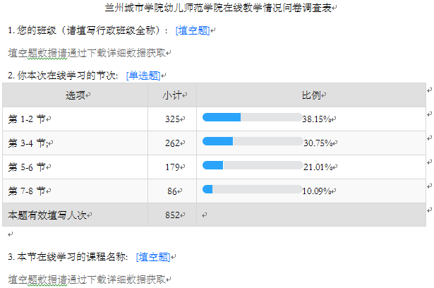 学生管理工作系统,通过建立授课教师、辅导员、班主任、学生间的沟通机制,进行在线学习前的学生动员,发布线上教学课程学习操作指南,及时掌握学生在线学习的条件,组织开展学习效果调查,全面了解学生课程学习体验,为线上教学持续改进提供依据。各二级学院课程线上教学专项工作小组,在开课后及时安排工作成员进入班级群了解教学情况,组织网上问卷调查,对调查结果进行分析并反馈各任课教师,鼓励教师充分关注、积极参与并有效利用调查结果,调整教学环节安排,强化师生互动,保证在线课堂、辅导、答疑、测验等的有效实施,提升线上教学质量。
