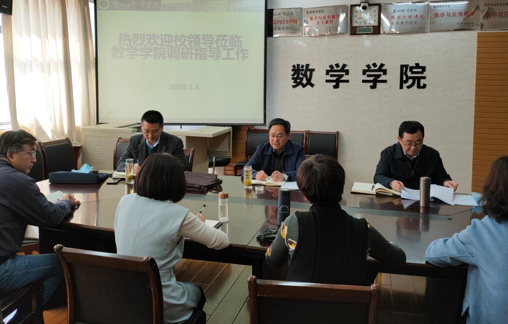 在数学学院,许尔忠强调,数学学院的发展关键要处理好学院近期发展不足与学校长期发展之间的矛盾,要处理好教职工的热切期盼与学校统筹发展之间的矛盾,要协调处理好提升内涵与扩大影响力、提高治学水平与扩大彰显度、提高教学质量与提高就业率之间的关系,能够继续起到在人才培养模式上的引领效应、学科发展上的支撑功能、专业经验建设上的创新效能、人才质量上的特色彰显。王学军指出,数学学院要继续抓好一流专业建设和学科建设,特别要重视申硕工作,迎难而上、精准对标,走出去请进来,加强交流沟通、学习借鉴,放眼数学专业发展大环境,加快引进优秀专业人才,切实加强师资队伍建设。