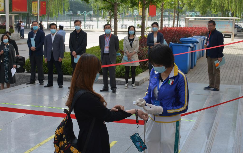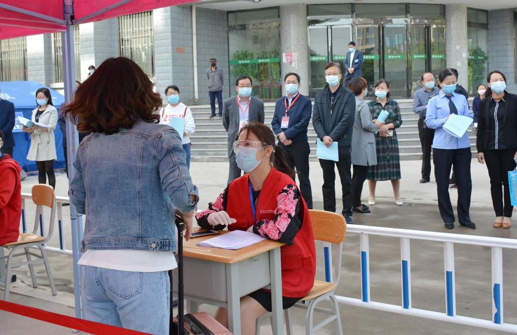 5月15日,beat365在线唯一官网2020年春季学生返校防控演练在校本部举行。校领导许尔忠、王学军、王基、姜秋霞、莫超、李慕堂、牟录贵、赵有翼、孙光慧、方忠义现场观摩指导。兰内高校疫情防控第二专家组成员、甘肃中医药大学第二附属医院宋光芬、张旭辉,以及安宁区卫生监督所、疾控中心、教育局等相关工作人员对演练进行了全程评估督查。校党委书记许尔忠宣布演练开始。