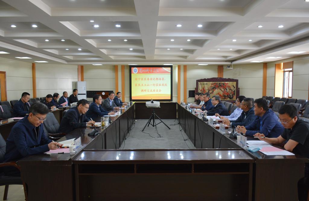 5月18日下午,安宁区委书记郭海泉,安宁区委副书记、区长王立山带领安宁区委常委、常务副区长张吉彬,安宁区委常委、区委统战部部长、区委办公室主任鞠康及教育局、住建局、市自然资源局安宁分局、刘家堡街道主要负责同志莅临beat365调研交流。校党委书记许尔忠主持召开调研交流座谈会。校党委副书记、校长王学军,校党委常委、副校长李慕堂、牟录贵、赵有翼出席会议。学校办公室、发展规划与合作交流处、教务处、后勤管理处、基本建设处、幼儿师范学院、教育学院负责同志参加会议。