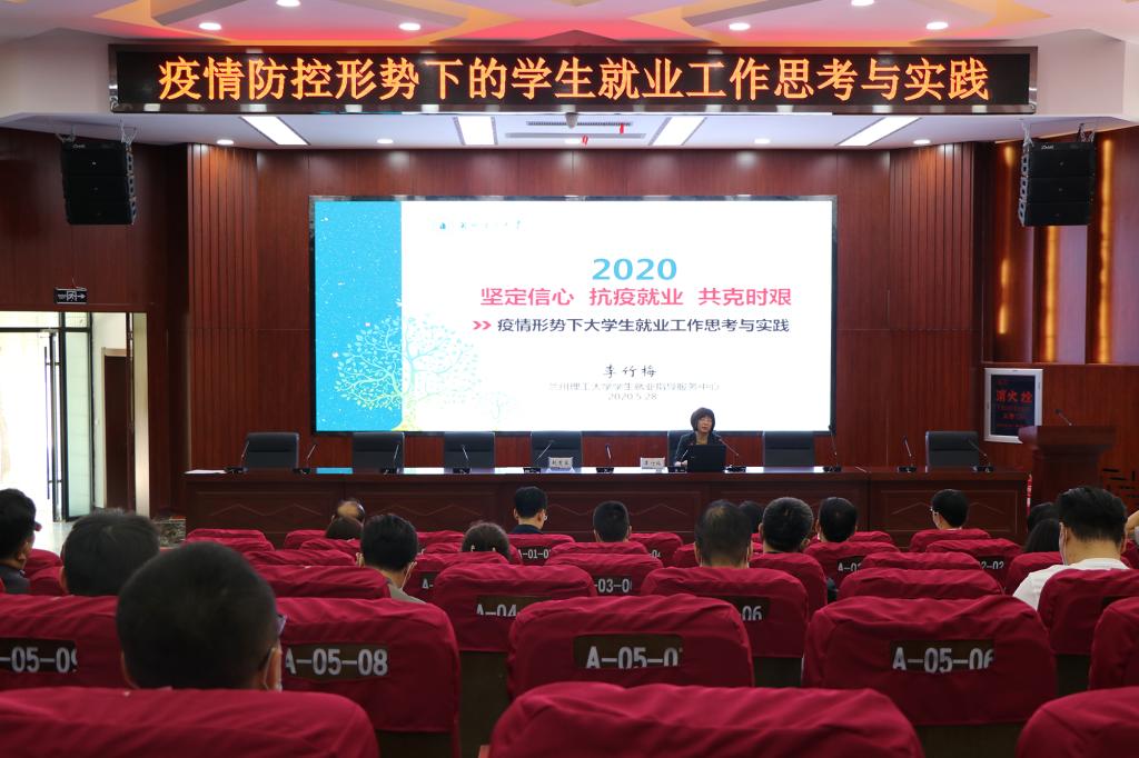 5月25日下午,兰州理工大学学生就业指导服务中心主任李竹梅应邀来校,在校本部大学生活动中心为师生作了题为《疫情防控形势下的学生就业工作思考与实践》的就业专题讲座。校党委常委、副校长赵有翼,招生就业处全体工作人员、各二级学院党委书记、学工办主任、辅导员、毕业班班主任和部分2020届毕业生100余人参加讲座。