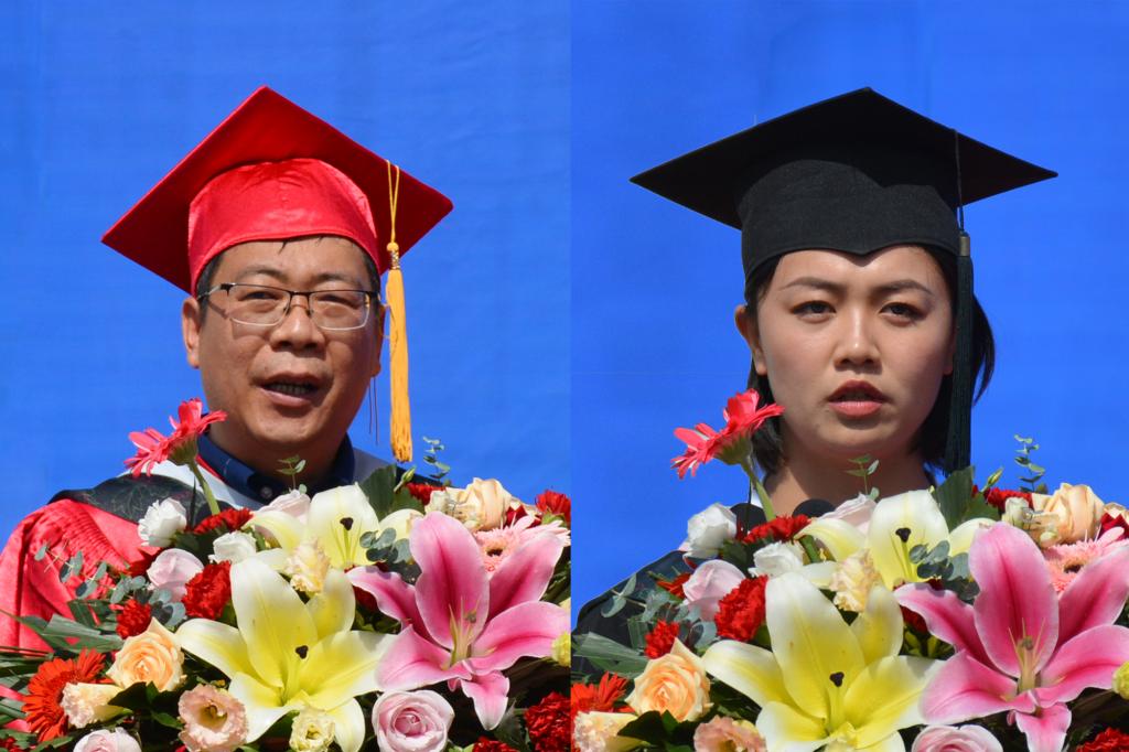 典礼上,地理与环境工程学院李开明教授作为教师代表发言,向毕业生送去了亲切叮嘱和美好祝愿。旅游学院旅游162班俞蔼玲作为2020届毕业生代表发言,感谢母校的培育之恩,祝愿母校明天更美好。