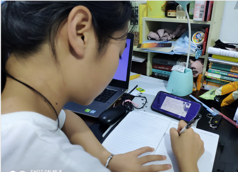 图为文县口头坝小学的崔月平老师在认真学习培训课程