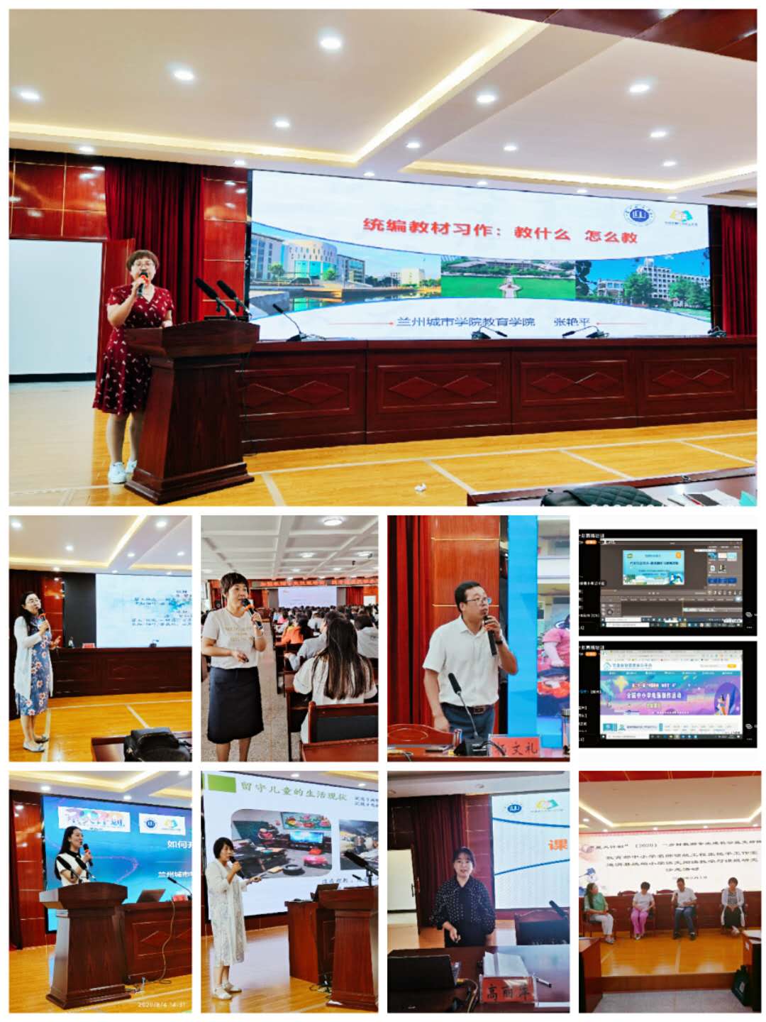在为期四天的培训中,专家团队以线上线下相结合的方式,开展了内涵丰富、形式多样、精彩纷呈的培训活动。张艳平老师和工作室成员沈爱莲老师、赵金花老师就统编小学语文教材的习作教学、阅读教学和朗读教学进行案例解读;伏蓉老师、李宝林老师就中小学教师信息技术应用、竞赛参与和微课制作开展线上指导;马云乡村校长奖获得者杨文礼老师、马云乡村教师奖获得者高瑞兰就学校和班级阅读经验进行分享交流;教育学院高丽萍老师、莫蓉老师就甘肃省“十三五”教育科学规划课题如何选题、论证和撰写申报书、如何推进教学研究和结题事项进行详细讲解和答疑。8月4日上午,举办了全体培训成员参加的研讨沙龙,通渭县教研室负责人和560余名教师现场围绕小学语文教学与教学研究问题展开热烈研讨,将本次培训推向了高潮。