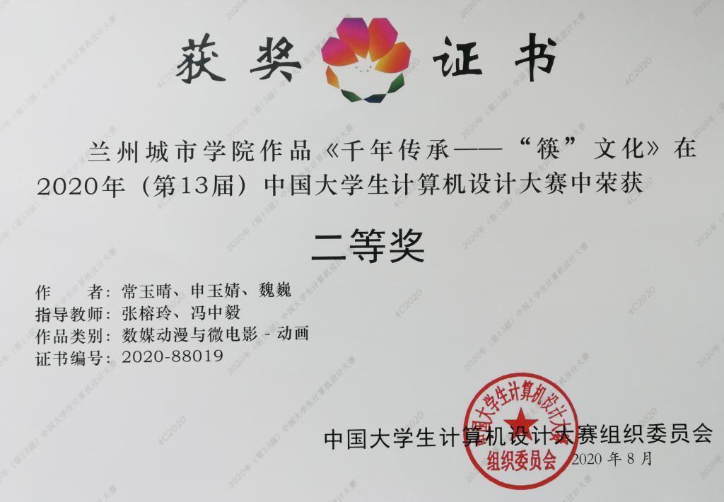 其中,由张榕玲、冯中毅指导,学生常玉晴、申玉婧、魏巍的作品《千年传承——筷文化》获数媒动漫与微电影组二等奖;由张榕玲、胡学文指导,学生屈雅莉、申玉婧、马娜的作品《沙尘暴》获微课与教学辅助组三等奖。