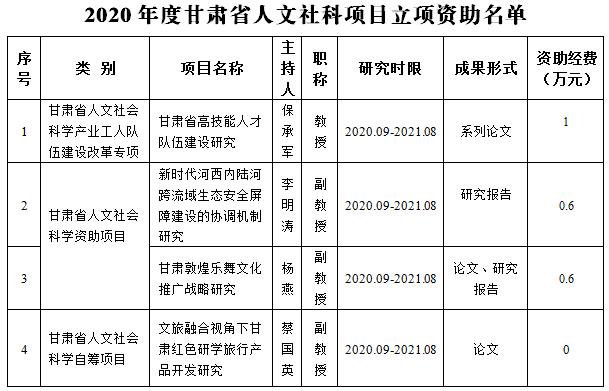 日前,2020年度甘肃省人文社科项目评审结果揭晓,beat365共有4项甘肃省人文社科项目获准立项。