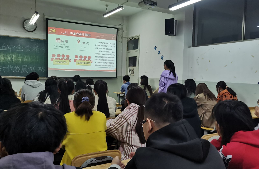 为进一步引导全校青年学生深刻认识十九届五中全会的重大意义,准确把握全会精神的核心内涵,帮助广大青年学生感悟党领导人民建设祖国新的伟大成就,增强“四个自信”,近日,校团委积极组织青年学生认真学习党的十九届五中全会精神。