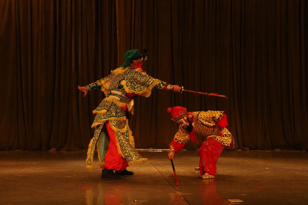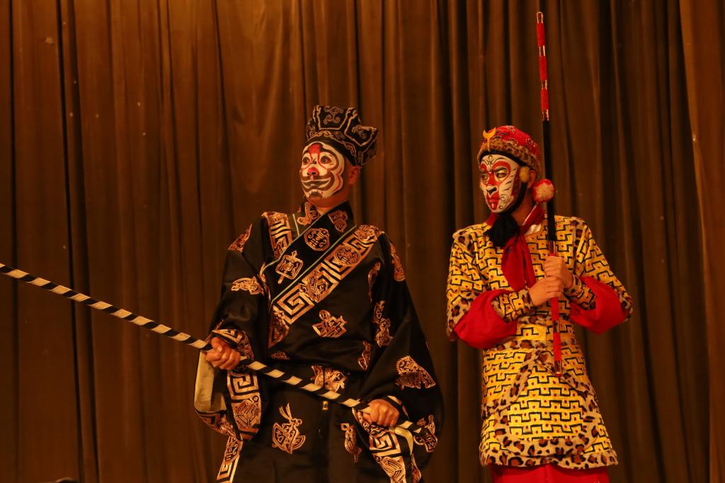 甘肃省演艺集团敦煌艺术团的艺术家们为师生带来了京剧《法门众生相》《拾玉镯》《时迁偷鸡》《穆桂英挂帅·捧印》,以及现代戏《智取威虎山》《江姐》《闹天宫》选段。