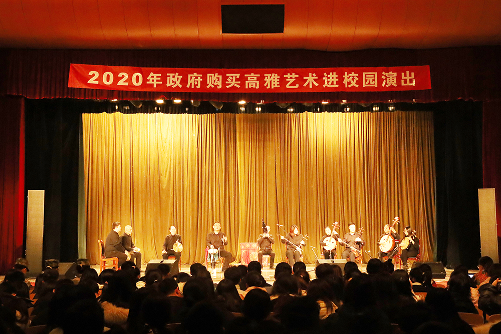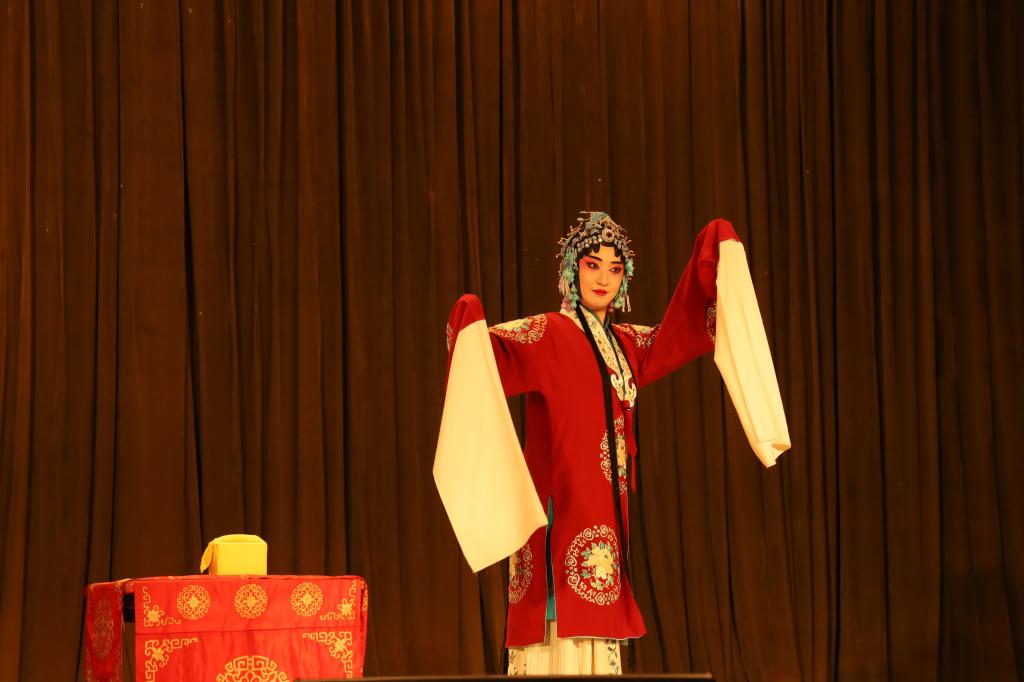 在热情奔放的《迎春曲》中,晚会的帷幕徐徐拉开。国家一级演员、敦煌艺术团艺委会主任孟庆波为师生讲述了京剧的来源、普及了京剧表演的技巧和方式、阐述了京剧独特的艺术表现形式,让学生们对京剧有更深入的了解。