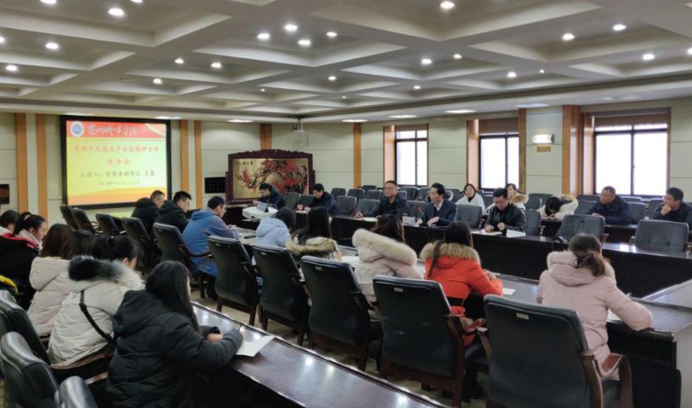12月23日下午,校党委副书记王基在校本部第二会议室为培黎石油工程学院、幼儿师范学院师生代表和党委组织部等部门干部宣讲党的十九届五中全会精神。