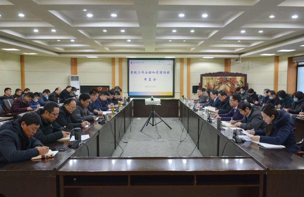 1月16日上午,寒假工作安排以及新冠肺炎疫情防控部署会在校本部第二会议室举行。校领导许尔忠、王学军、姜秋霞、莫超、李慕堂、牟录贵、方忠义、王珺出席会议。各学院党委(党总支)书记、各单位、机关各部门负责人参加会议。校党委书许尔忠主持会议。