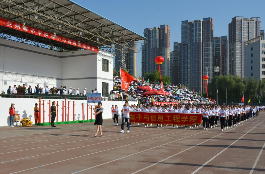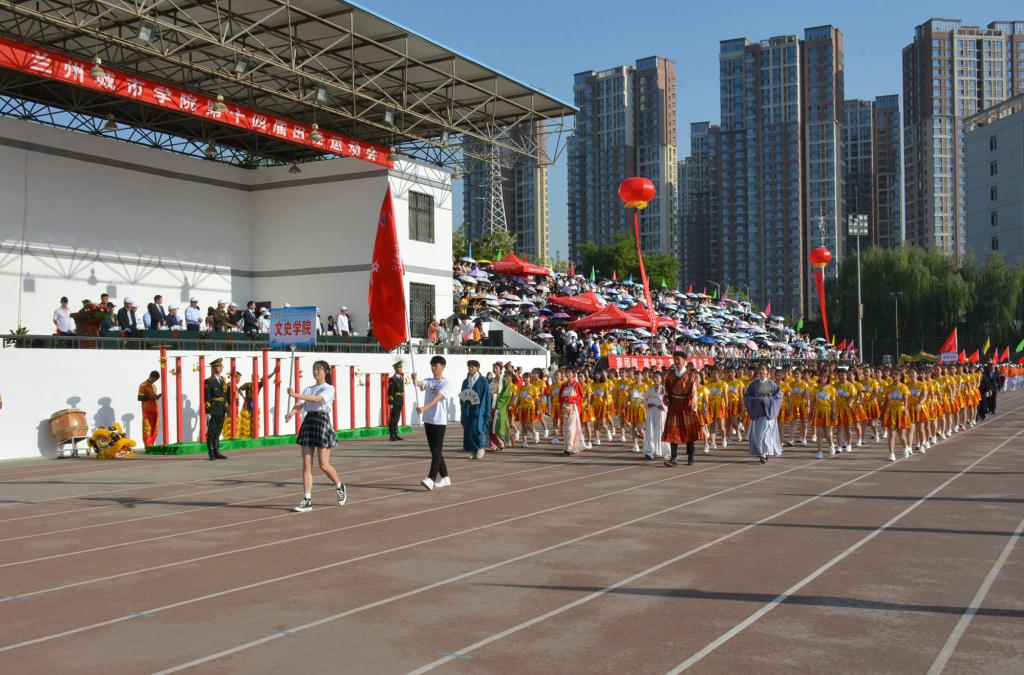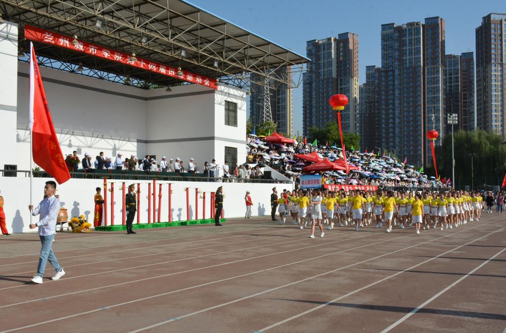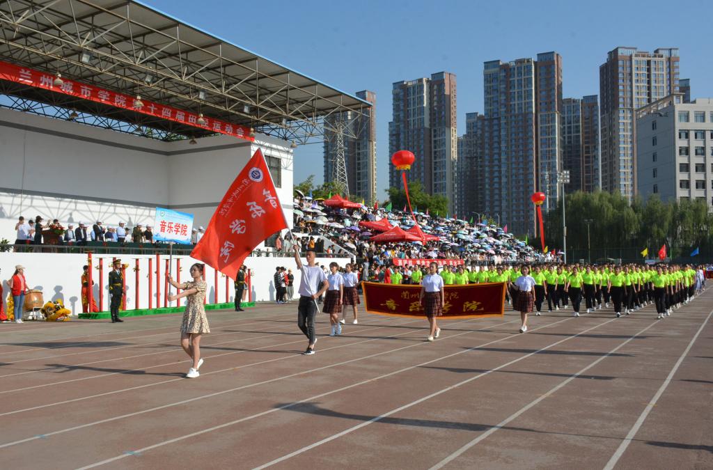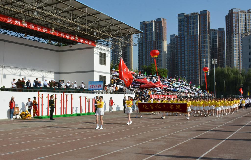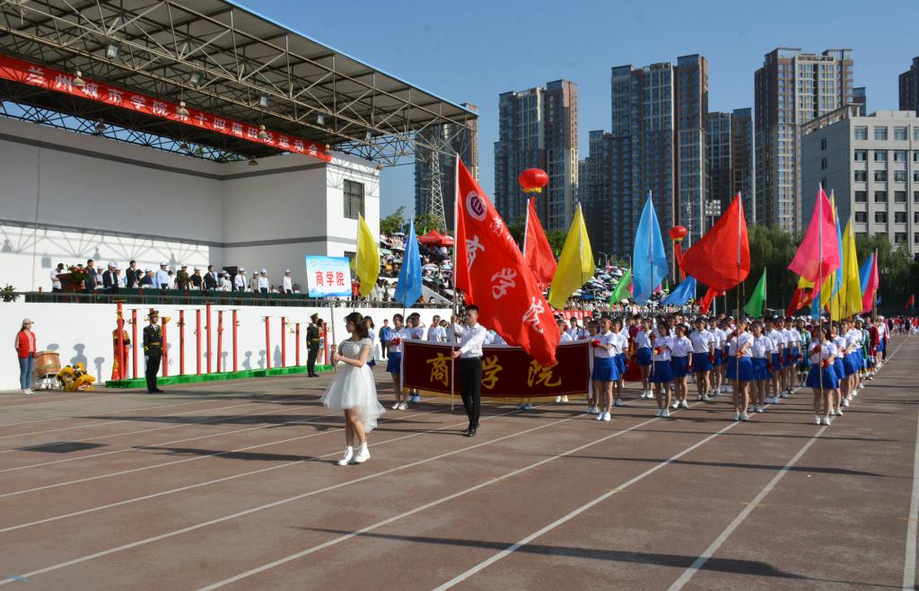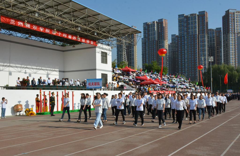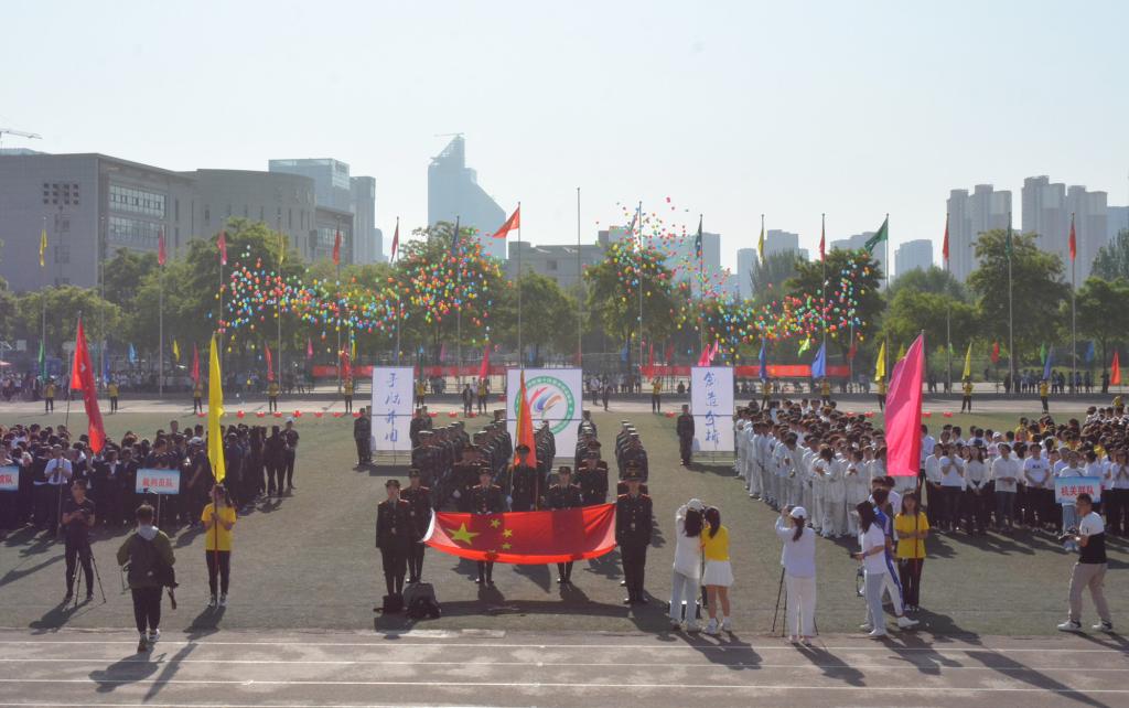 在欢快激昂的运动员进行曲中,国旗队、会徽队、校训队、彩旗队、裁判员队伍和各学院、各单位代表队精神抖擞,意气风发,步伐整齐,喊着嘹亮的口号依次入场。