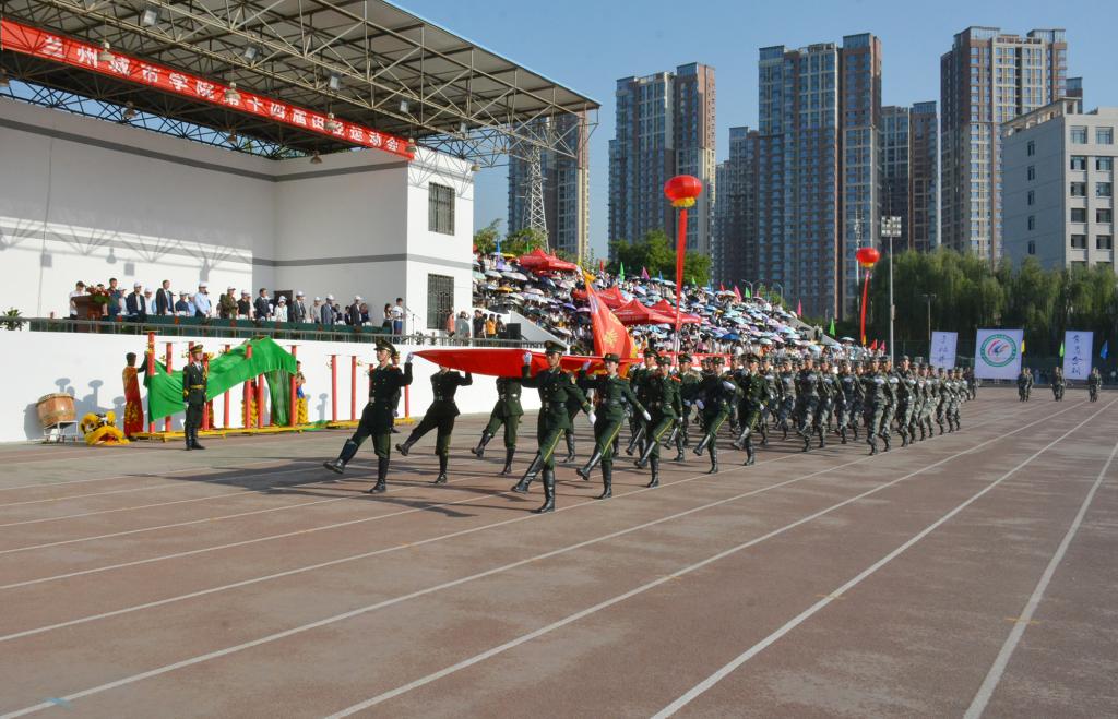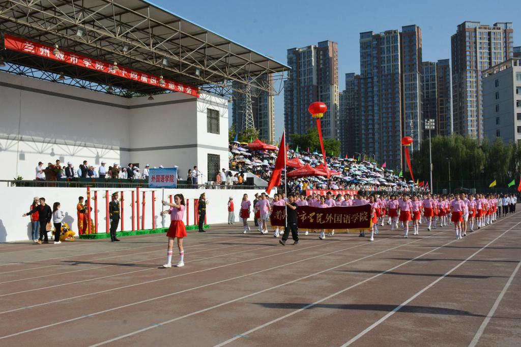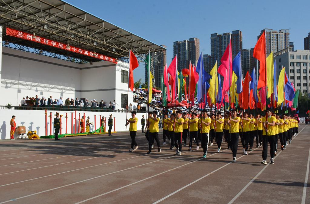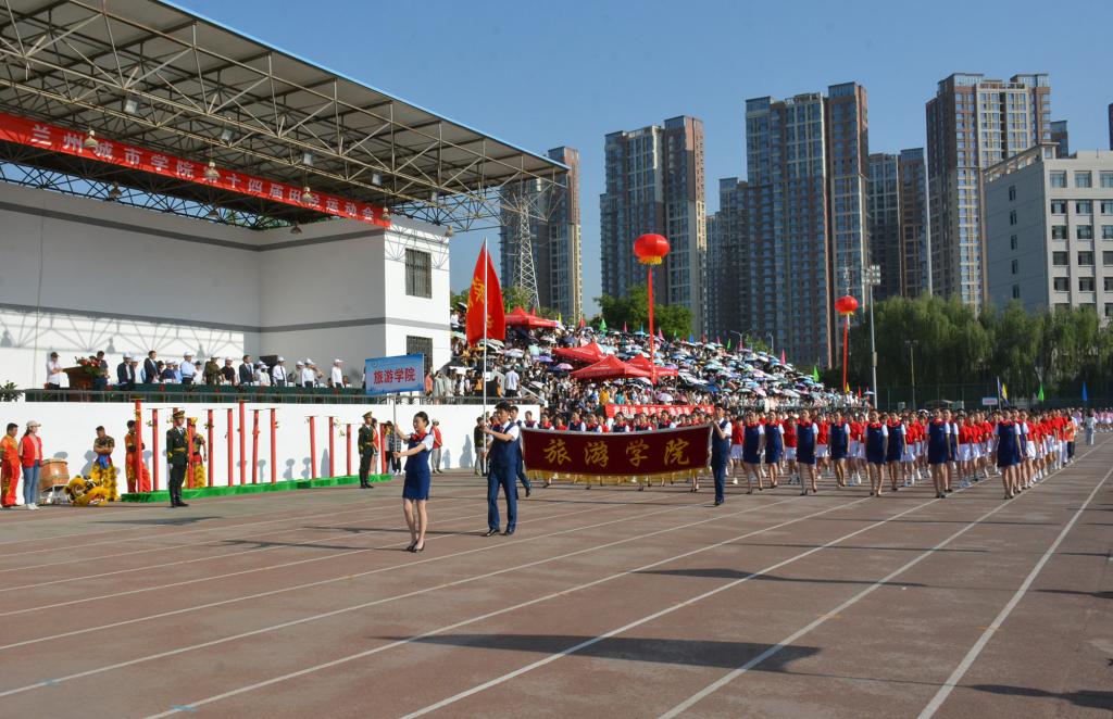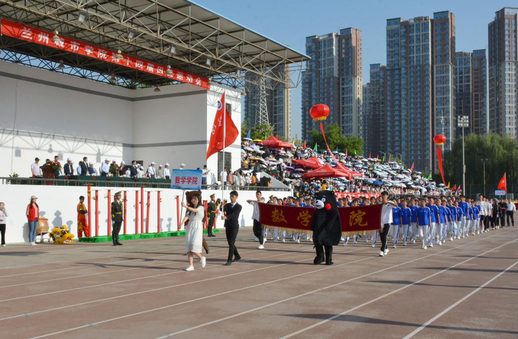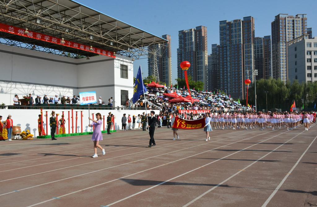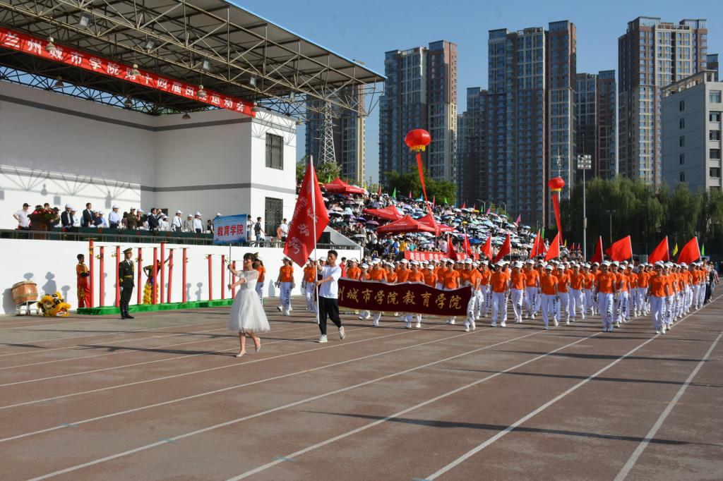 在欢快激昂的运动员进行曲中,国旗队、会徽队、校训队、彩旗队、裁判员队伍和各学院、各单位代表队精神抖擞,意气风发,步伐整齐,喊着嘹亮的口号依次入场。