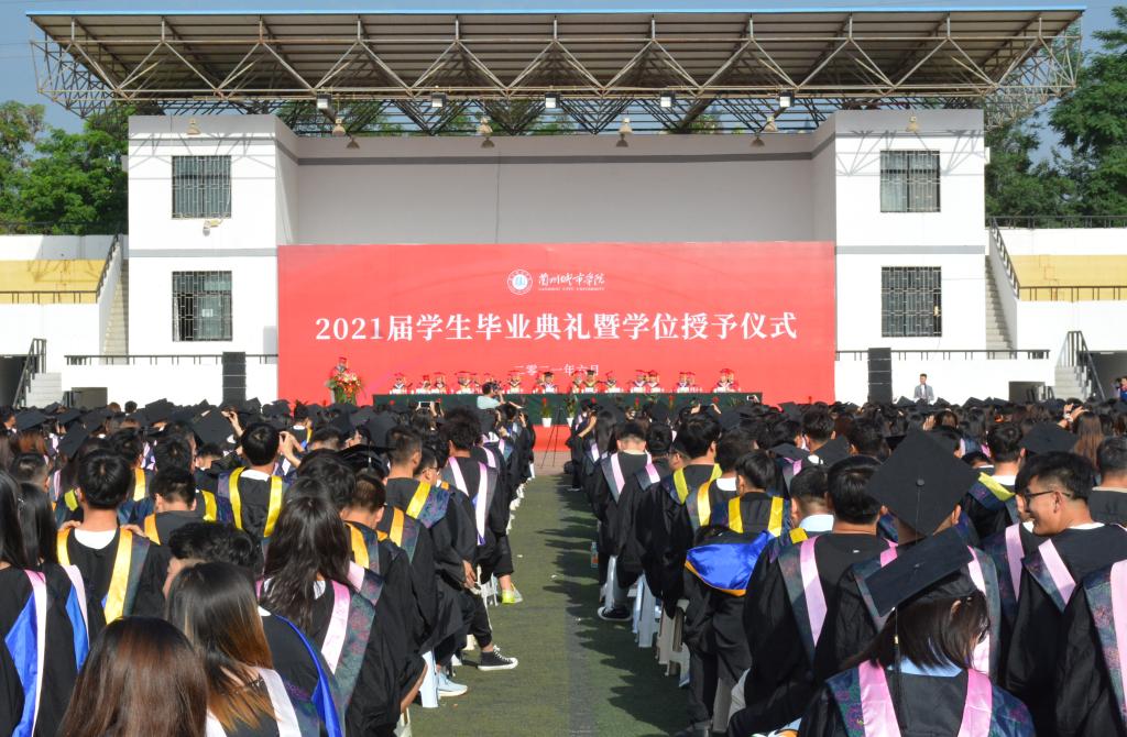 6月29日上午,beat365在线唯一官网2021届学生毕业典礼暨学位授予仪式在校本部体育场隆重举行。校领导许尔忠、王学军、姜秋霞、莫超、李慕堂、牟录贵、方忠义、王珺和校学位评定委员会委员、2021届毕业生参加了典礼。典礼由校党委常委、副校长牟录贵主持。