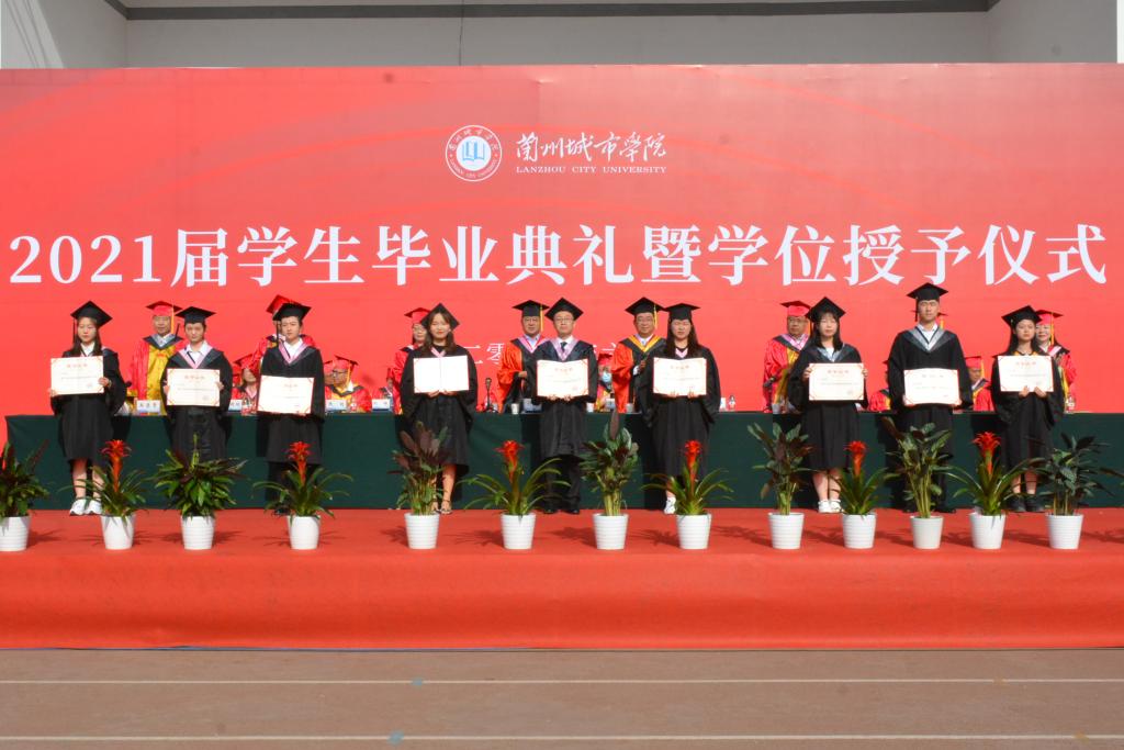 校党委常委、副校长李慕堂宣读了《甘肃省教育厅关于公布2021届甘肃省高校优秀毕业生的决定》《beat365在线唯一官网关于表彰2021届优秀毕业生的决定》,全体校领导向2021届优秀毕业生代表颁奖。