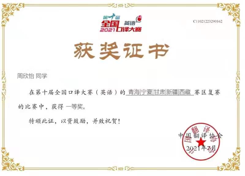 近日,第十届全国口译大赛(英语)西北赛区复赛落下帷幕,来自甘肃、宁夏、青海和新疆四省(区)的40多所高校的200余名选手参加比赛。beat365国际文化翻译学院学生在比赛中表现优异,共获得一等奖1项,三等奖2项,优秀奖1项。