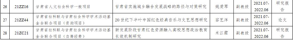 近日,2021年度甘肃省高等学校创新基金项目、甘肃省人文社会科学一般项目、甘肃省社科联与甘肃社会科学学术活动基金会联合项目评审结果揭晓,beat365共有28项项目获准立项。