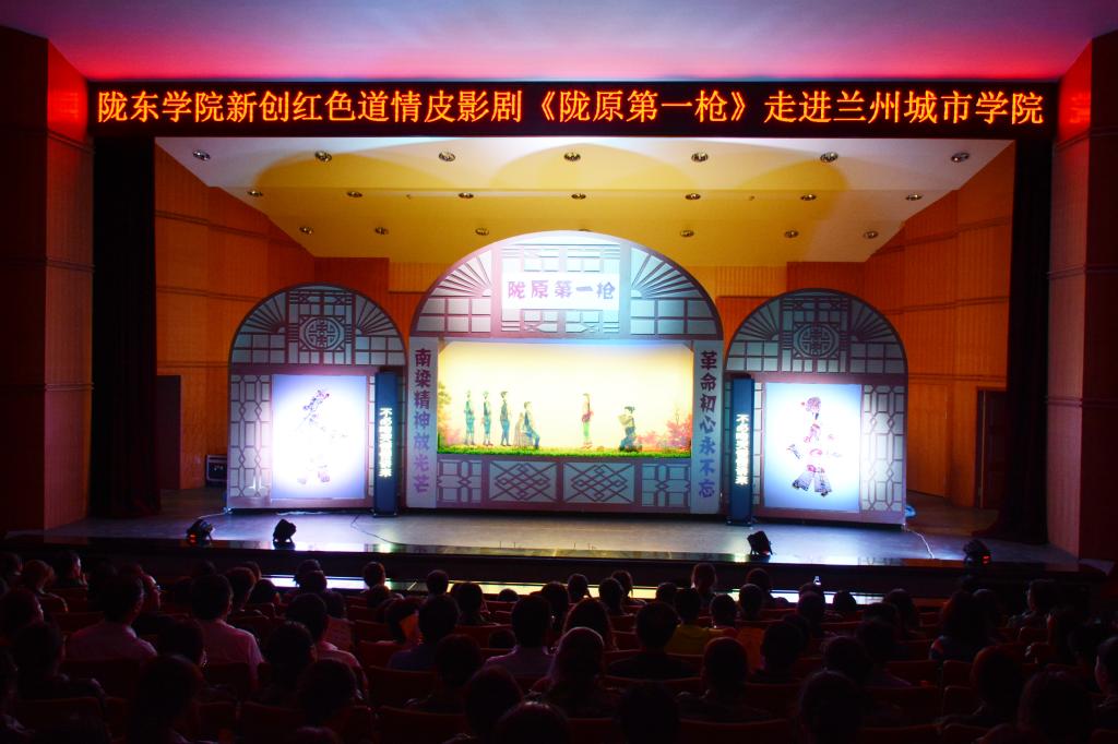 王学军代表学校对陇东学院领导和演职人员的到来表示热烈欢迎。他指出,长期以来,陇东学院扎根陇东黄土大塬,传承弘扬南梁精神,充分挖掘陇东厚重的传统文化积淀,依托道情皮影全省中华优秀传统文化传承基地,通过产、学、研一体化方式,积极普及与推广中华优秀传统文化,在弘扬中国精神、传播中华文化方面作出了不懈的努力。特别值得称道的是,陇东学院创造性地将红色资源与道情皮影戏有机结合,用“三尺生绡做戏台,全凭十指逞诙谐,有时明月灯窗下,一笑还从掌中来”的小小皮影生动演绎轰轰烈烈的革命历史,让这一列入“人类非物质文化遗产代表名录”的中国传统民间艺术“活化石”焕发出了勃勃生机,为深入推进党史学习教育、继承弘扬优秀传统文化、振奋中华民族精神增添了浓墨重彩的一笔。