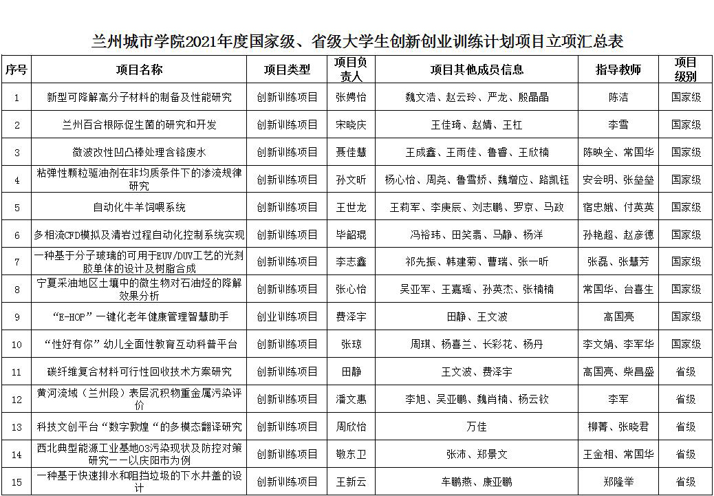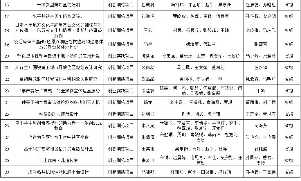 年国家级、省级大学生创新创业训练计划项目名单。beat365