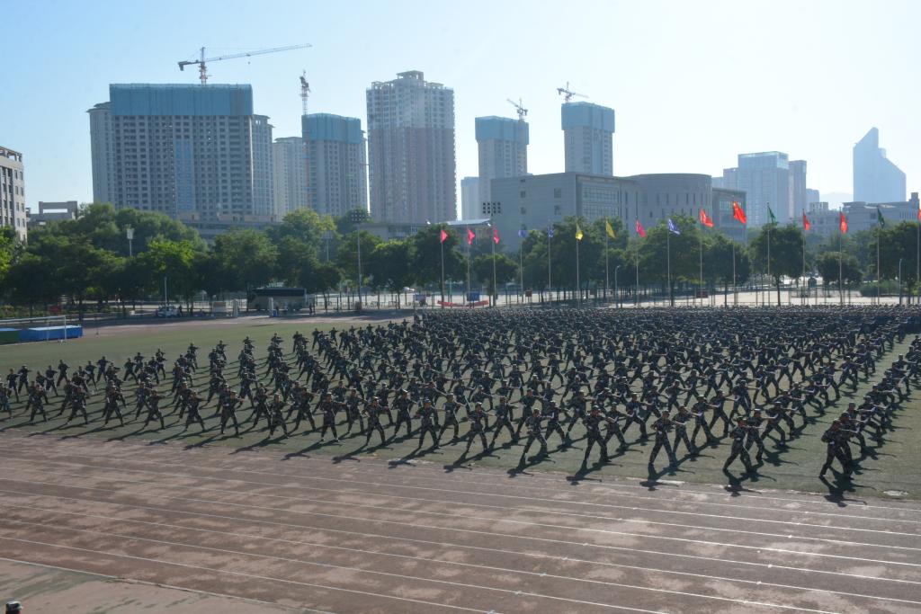 校党委副书记、校长王学军讲话指出,在为期14天的军训中,同学们冒酷暑、迎热浪,用钢铁般的意志站军姿、练步法、唱军歌、正军容、严风纪,以一名军人的标准严格要求自己,用勇敢和坚毅诠释了军训这一难忘的经历。汇报表演中,同学们步伐整齐、口号嘹亮、动作规范、斗志昂扬,彰显了当代大学生的青春气息和坚定意志。