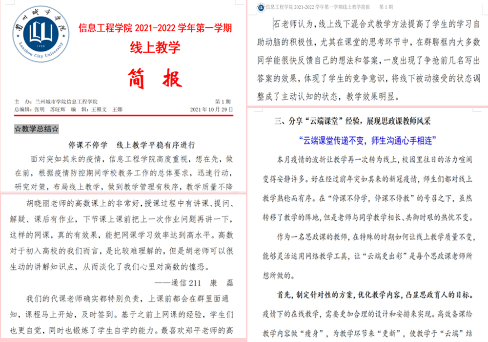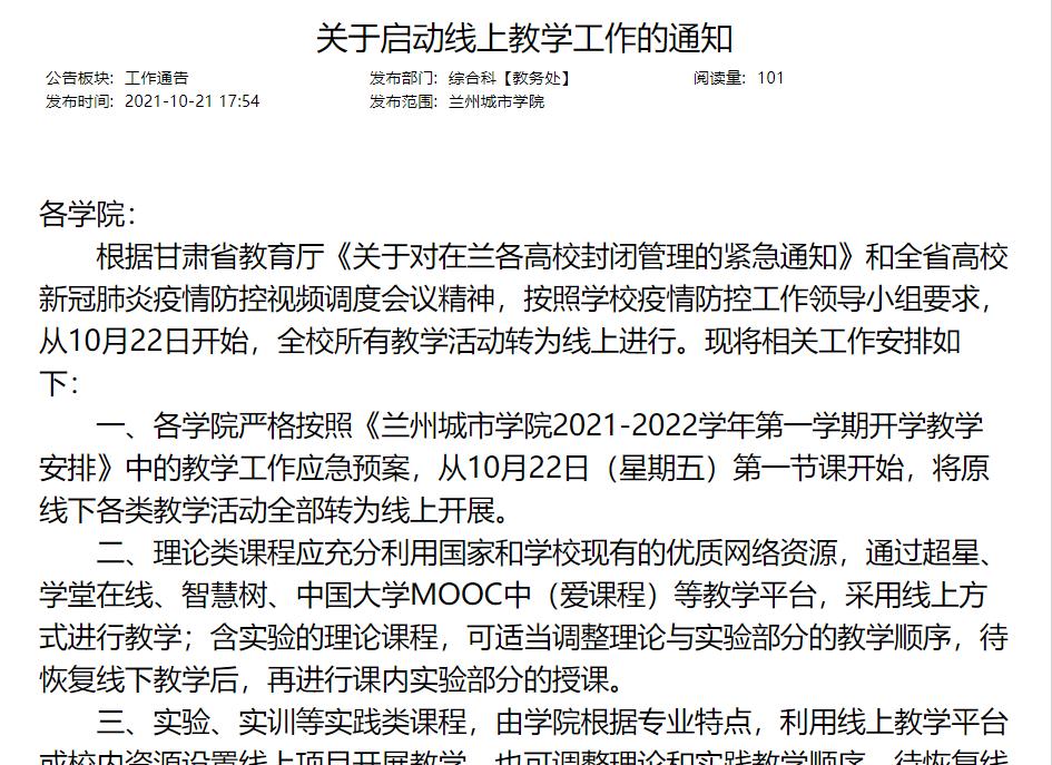 突如其来的疫情打乱了正常的教学安排。根据省教育厅疫情防控相关精神和学校疫情防控工作领导小组要求,beat365迅速启动了《beat365在线唯一官网2021-2022学年第一学期开学教学安排》的教学工作应急预案,从10月22日起,将原线下各类教学活动全部转为线上开展。在教务处的周密安排和各学院的认真组织下,全校实现了教学活动由线下向线上的平稳运行。