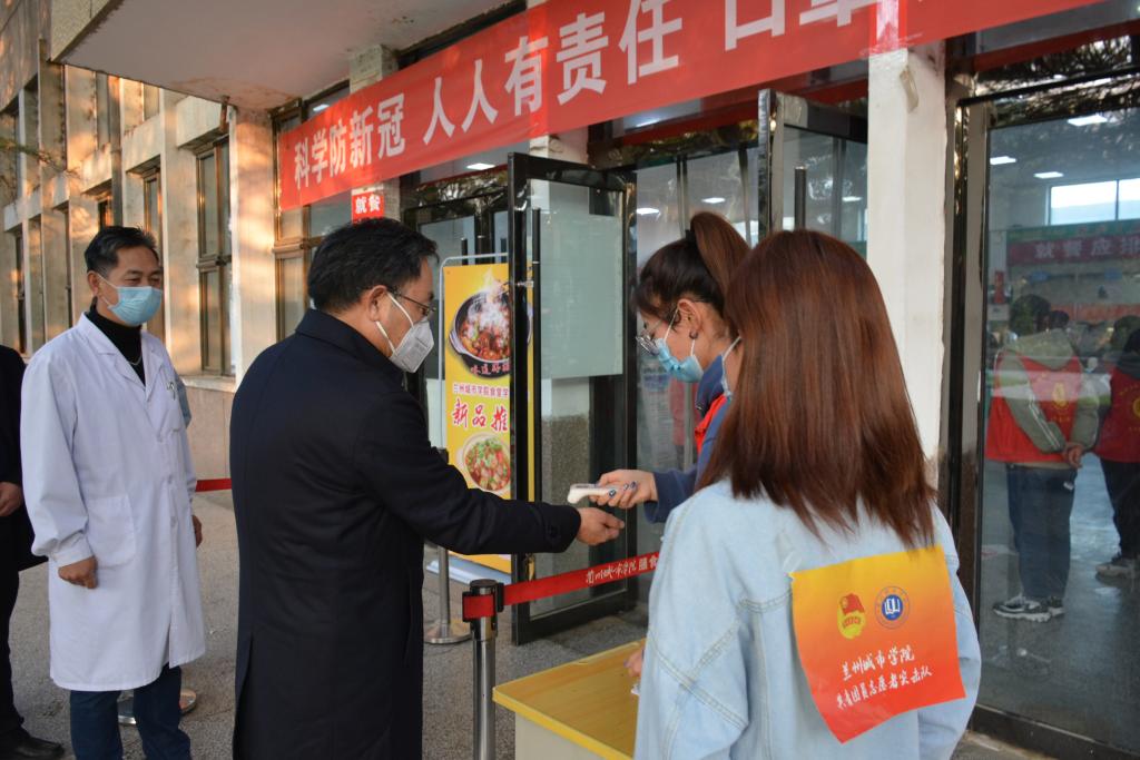 在学校门口,校党委书记许尔忠向安保人员和党员先锋岗值班人员详细询问了进出人员及车辆管控、人员体温测量情况,查看了人脸识别测温和校园出入口管控设备的运行情况,强调学校大门是防控疫情的关键部位,责任重大,要严格实施校园封闭管理,为学校守好第一道“安全防线”。在校医院、校内隔离观察区,许尔忠向工作人员了解了核酸检测相关工作,查看了防疫物资储备,询问了隔离观察区各项措施落实情况,指出要抓好管理服务,把疫情防控工作做实做细。在学生餐厅,许尔忠了解了餐厅供餐、体温检测和师生错峰就餐情况,要求饮食服务中心和各餐厅负责人,要强化政治意识、大局意识和责任意识,加强食品卫生安全管理,严格做好餐饮人员的身体健康监控和体温检测工作,加强环境日常消杀,确保广大师生安全就餐、安心就餐;并与学生志愿者、正在就餐的同学亲切交流,征求了同学们对餐厅服务和学校管理工作的意见建议,叮嘱同学们要做好自身安全防护,安心学习、快乐生活。