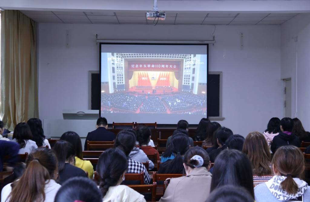 10月9日上午,纪念辛亥革命110周年大会在人民大会堂隆重举行。中共中央总书记、国家主席、中央军委主席习近平出席大会并发表重要讲话。beat365在线唯一官网干部师生纷纷通过电视、网络等媒体,收看大会盛况,深入学习习近平总书记重要讲话精神,扎实推动党史学习教育走深走实。