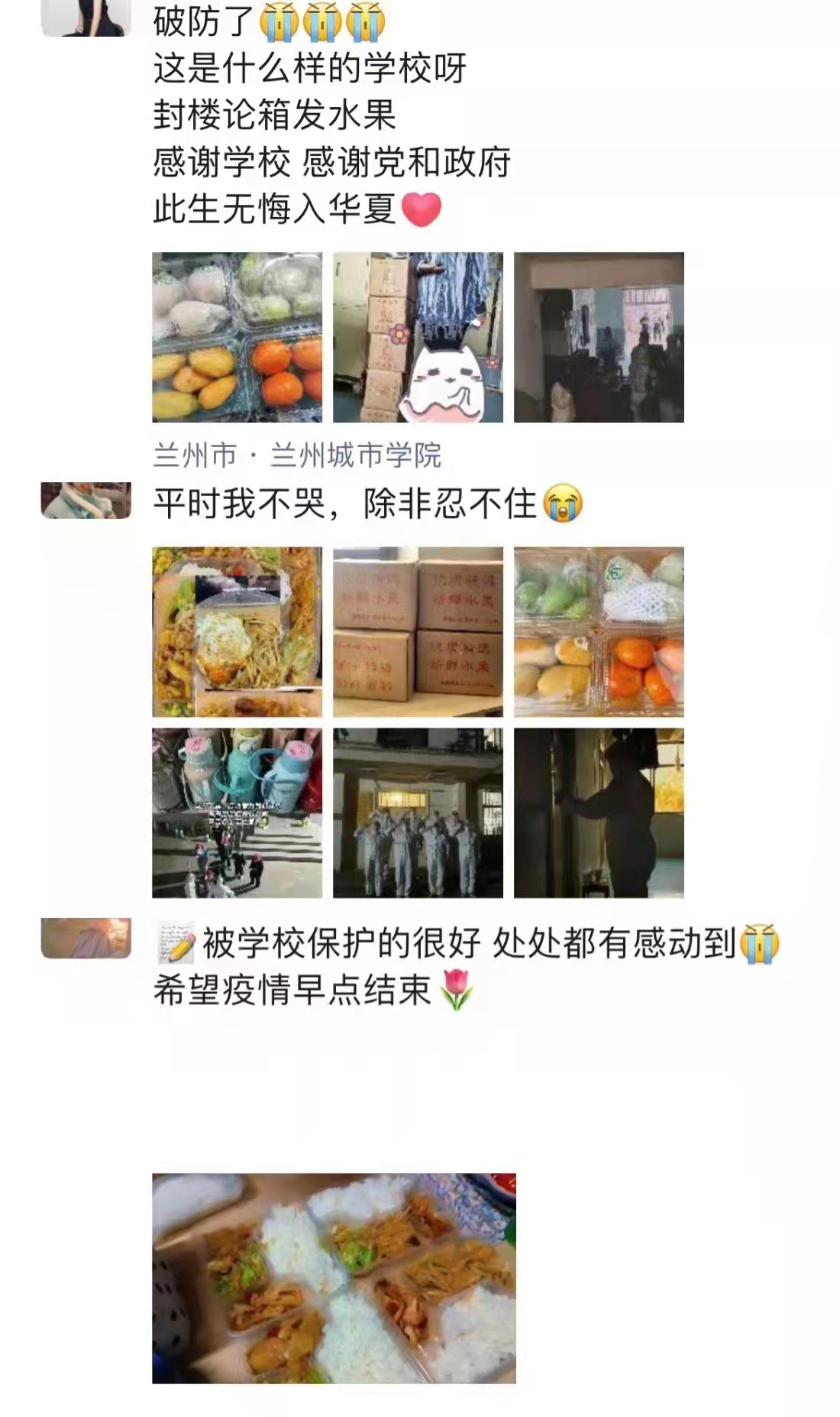 收到“爱心礼包”让正在集中进行健康监测的同学们倍感惊喜。城市经济学院经济181班赵亚娟表示:“非常感谢学校对大家的关怀,感谢所有疫情防控工作人员以实际行动关心关爱集中健康监测的学生。正是有了学校和所有人员的守护和付出,大家才能安心地学习生活。” 化学工程学院化学182班徐大瑛说:“学校的爱心之食给予的是生命之甘,更让我懂得同心抗疫,我们一起温暖前行,攻克时艰!”城市管理学院乘务191班车飞宇表示:“能够参加这次志愿活动帮助他人,感觉非常高兴,同时也深切感受到了学校对学生的关心关怀。”