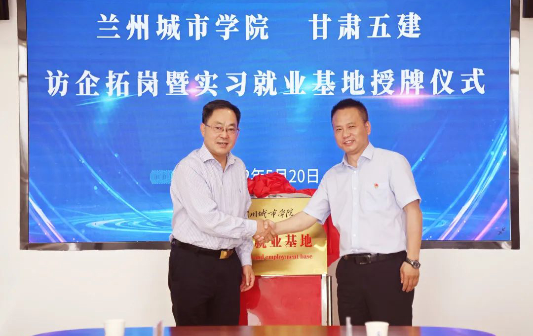在甘肃五建,校党委书记许尔忠参观了甘肃五建百郦东方城市展厅和项目建设现场,与甘肃五建党委书记、董事长张克诚一同为“beat365在线唯一官网实习就业基地”揭牌,并进行了深入交流。