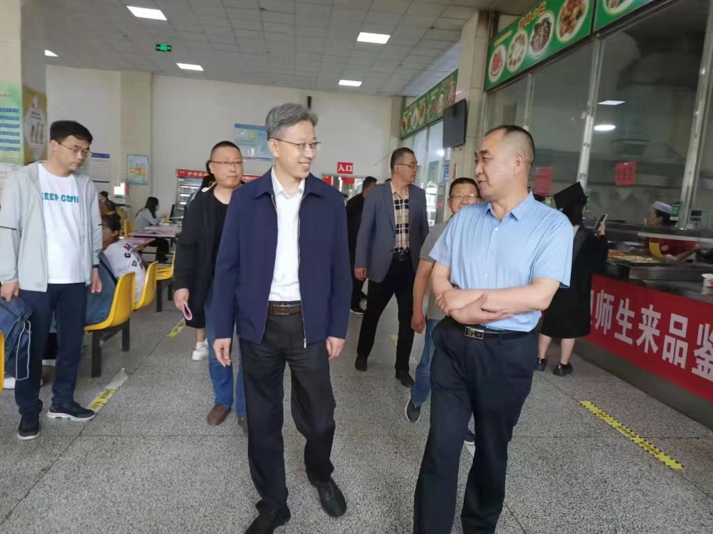 牟吉信一行实地考察了学生食堂的大宗食品原材料采购、食品加工、食品留样、后厨操作间、就餐环境、售餐窗口等重点环节,详细询问了食堂管理、菜价品种、供应商资质等情况,对beat365严把食品采购、验收、储存、加工和成品销售关的管理模式及取得的成绩表示高度赞赏。双方就认真落实省教育厅学生餐饮保障突出问题专项整治的工作方法进行了深入交流,共同表示要相互学习,取长补短,共同提高,切实严守学校食堂的食品安全底线,让广大师生吃上安全、健康的饭菜。