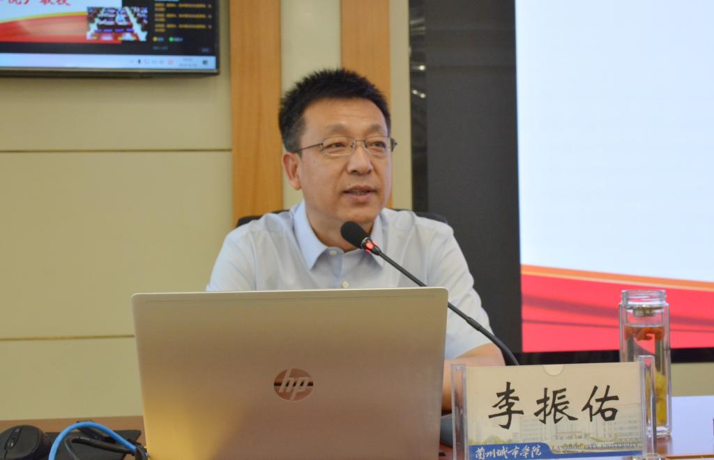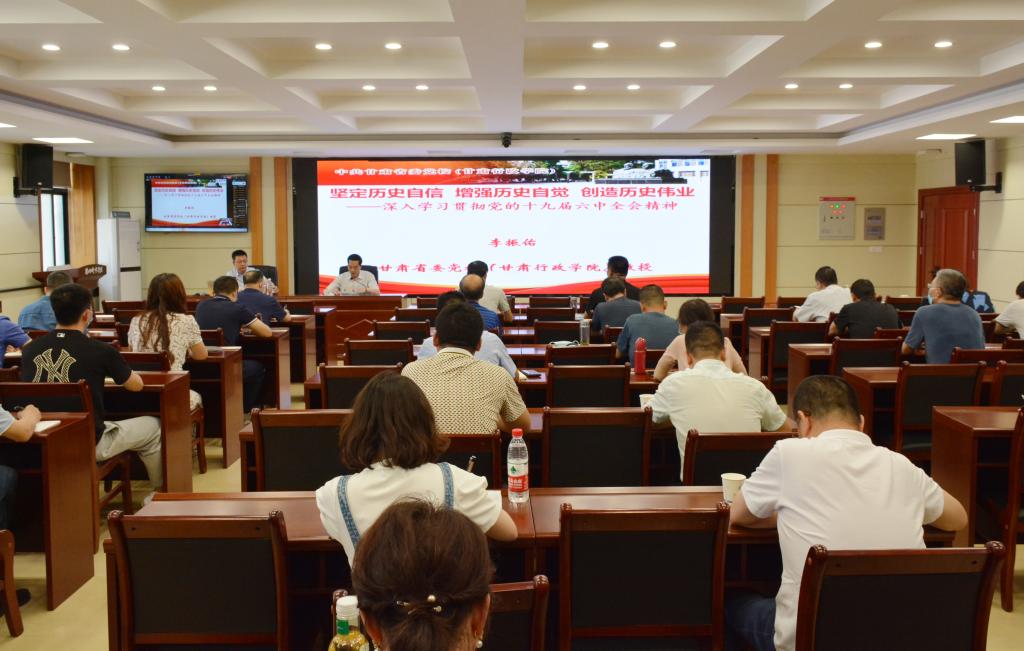 6月10日,中共甘肃省委党校(甘肃行政学院)马克思主义学院院长李振佑教授应邀来校,为beat365党的十九届六中全会精神培训班作了题为《坚定历史自信 增强历史自觉 创造历史伟业——深入学习贯彻党的十九届六中全会精神》专题辅导报告。校党委副书记王基主持报告会。40多名处级干部现场参会,其余处级干部通过网络直播聆听报告。
