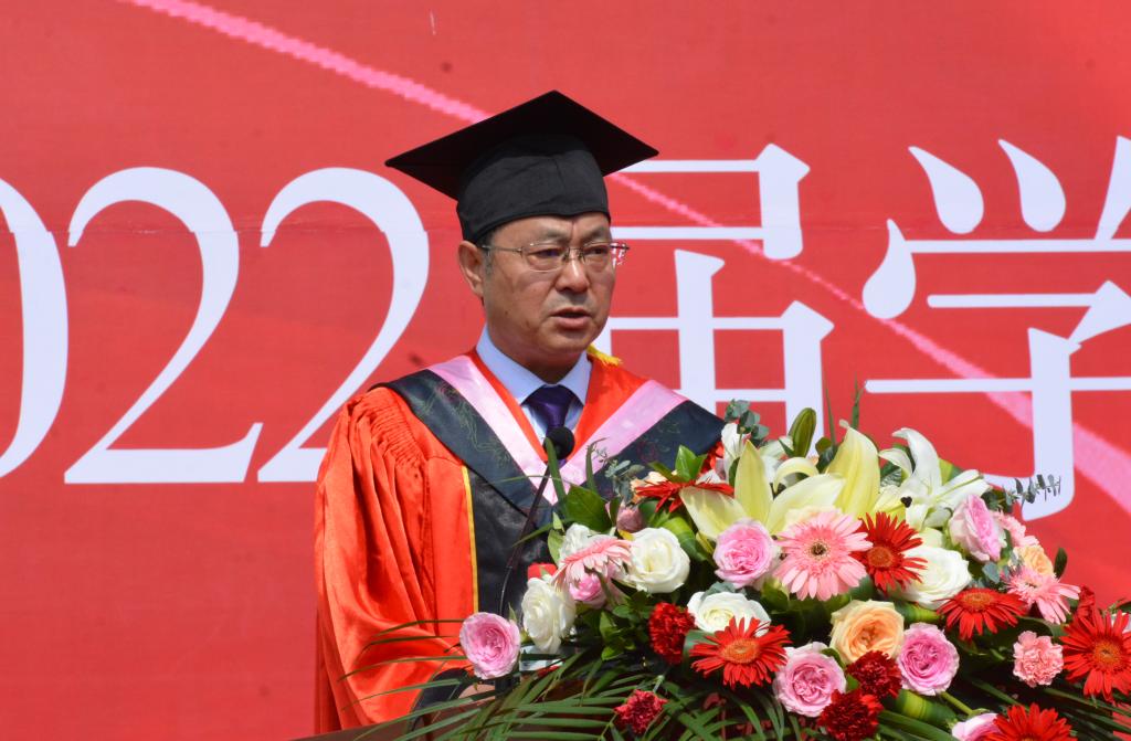 他对2022届毕业生提出两点期望。毕业生们要胸怀梦想,追求卓越,坚守高等教育赋予你们的卓识远见和浩然之气,志存高远,踔厉奋发,把大学学到的专业知识和多种能力凝结为实力和底气,迎接机遇和挑战,让梦想照亮和温暖前行的路,寻找到属于自己的海阔天空;要铭记“手脑并用,创造分析”校训,仰望星空,脚踏实地,有“梦想家”的热情,也有“实干家”的坚韧,善于转识成智,化理论为德性,化理论为方法,化理论为能力,化理论为创造,让读书和思考成为生活的一种习惯,不断增强脑力、眼力、脚力和创造力,持续积累知识,孕育才华,提升能力,创获智慧,勇担时代赋予的使命责任,最终成就梦想,创造幸福美好生活。