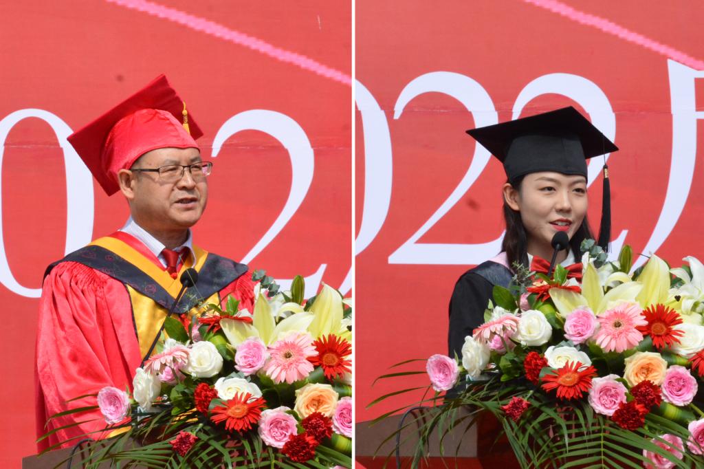 电子工程学院王国伟教授代表全体教师发言,表达了对毕业生的热切祝贺和殷殷期盼;城市经济学院财务管理专业181班王沛代表全体毕业生发言,表达了对母校、老师、父母的感恩之情,畅叙对未来美好人生的憧憬。