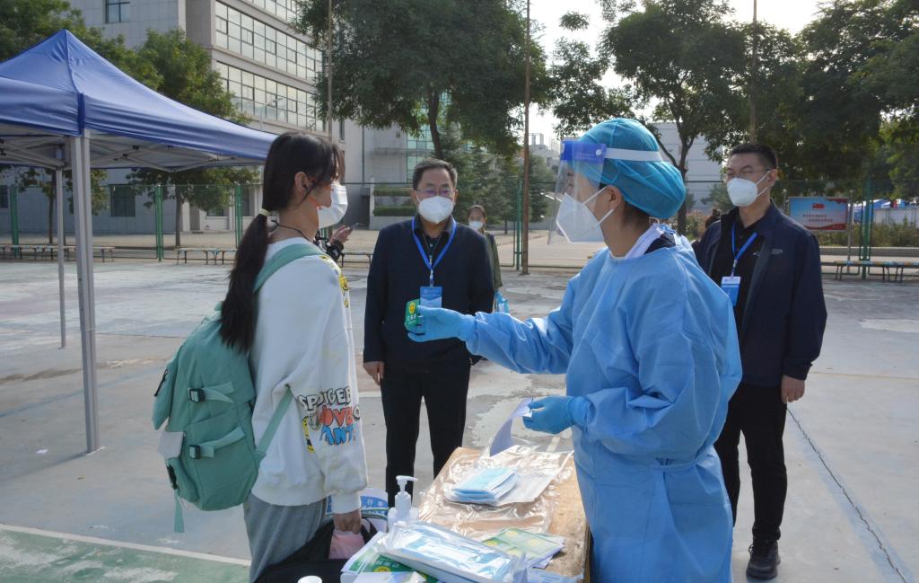 学校在机场、火车站、西客站、汽车东站、长途客运站安排专车接送兰外学生,乘坐公共交通工具来兰的学生进行“一扫五查”、行李消杀、身份核验后,有序乘坐专车“点对点”到校。同时,学校严守“校门关”,所有学生在落实“一扫五查”、行李消杀、身份核验等防疫环节后入校,入校第一时间进行核酸检测。报到当天,全体学校领导先后深入学生入校各个环节,深入了解疫情防控措施落实和进展情况,并进行现场指导。
