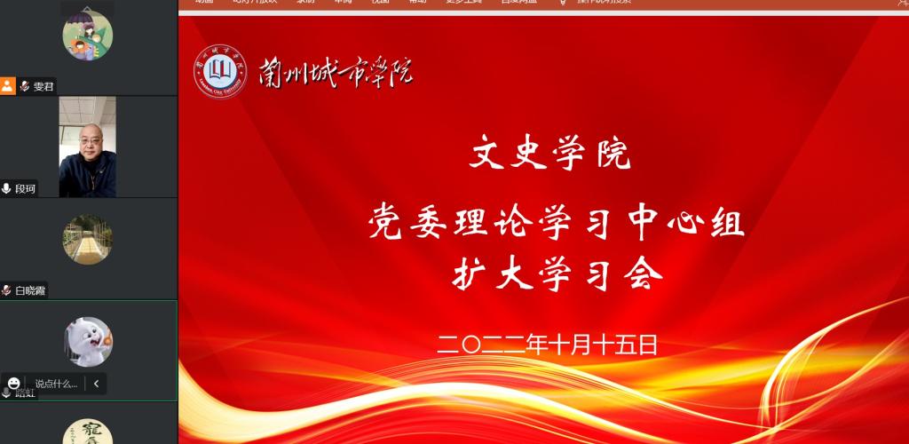 10月15日下午,文史学院党委线上召开党委理论学习中心组扩大学习会,专题学习《习近平谈治国理政》第四卷。文史学院领导班子全体成员、党委委员、党支部书记参加会议。校党委常委、副校长莫超带领巡学旁听组成员对理论学习中心组扩大学习会进行了巡学旁听。