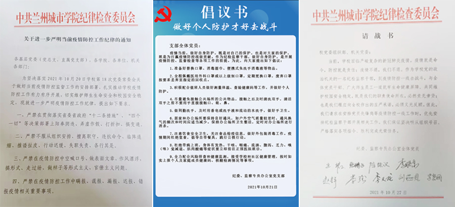 聚焦疫情防控监督。面对疫情肆虐,我们闻令而行,第一时间响应校党委的部署要求,全体干部深入一线,既当“督战员”又当“战斗员”,及时提出“九个严禁”纪律要求,研究制定疫情防控监督检查工作计划、疫情防控工作监督检查清单,进行了无死角、全覆盖的监督检查,严肃查处落实疫情防控责任不力干部,构筑起疫情防控校园安全屏障。
