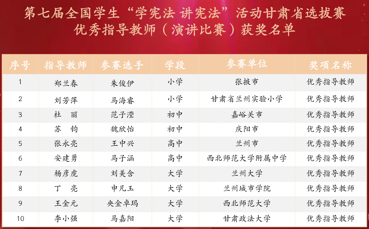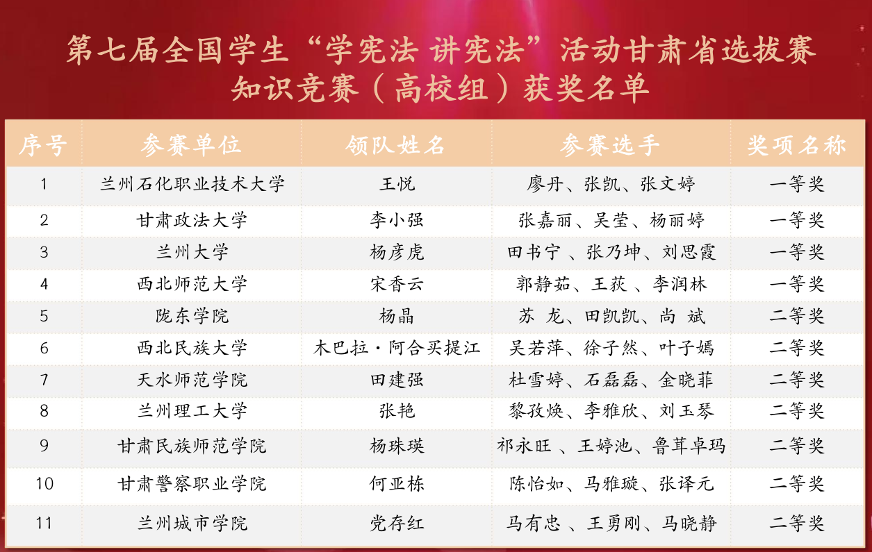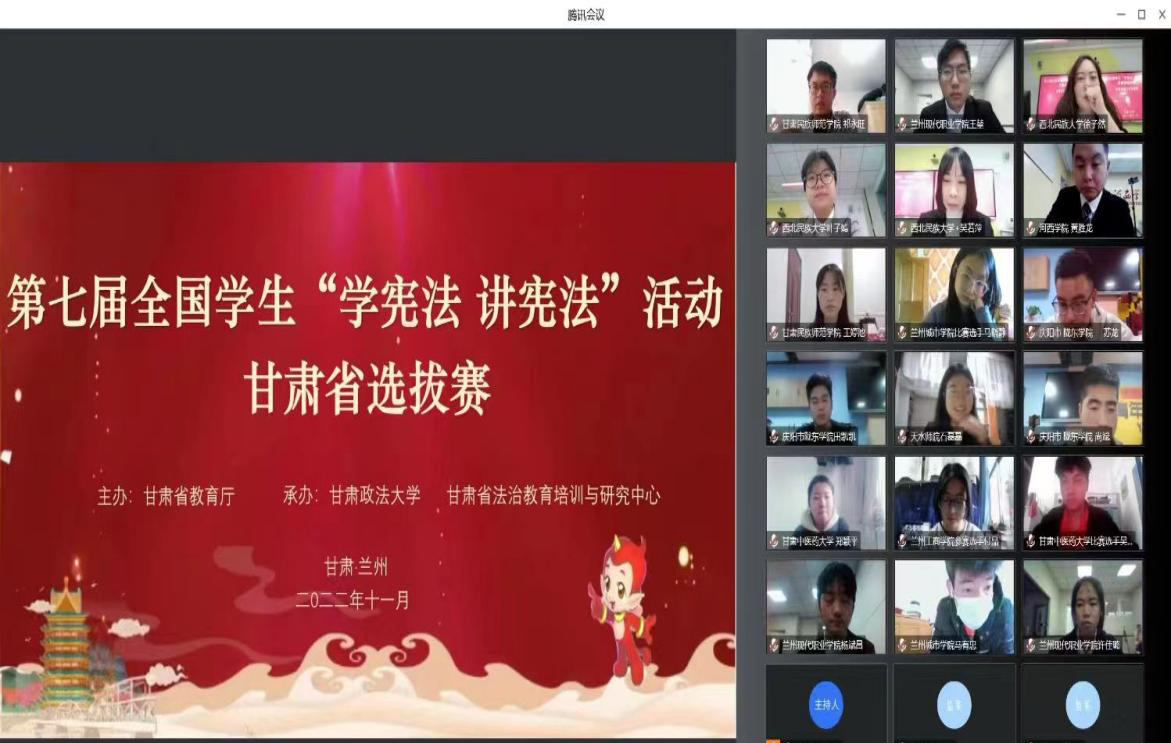 11月9日,由甘肃省教育厅主办的第七届全国学生“学宪法 讲宪法”活动甘肃省选拔赛圆满结束。