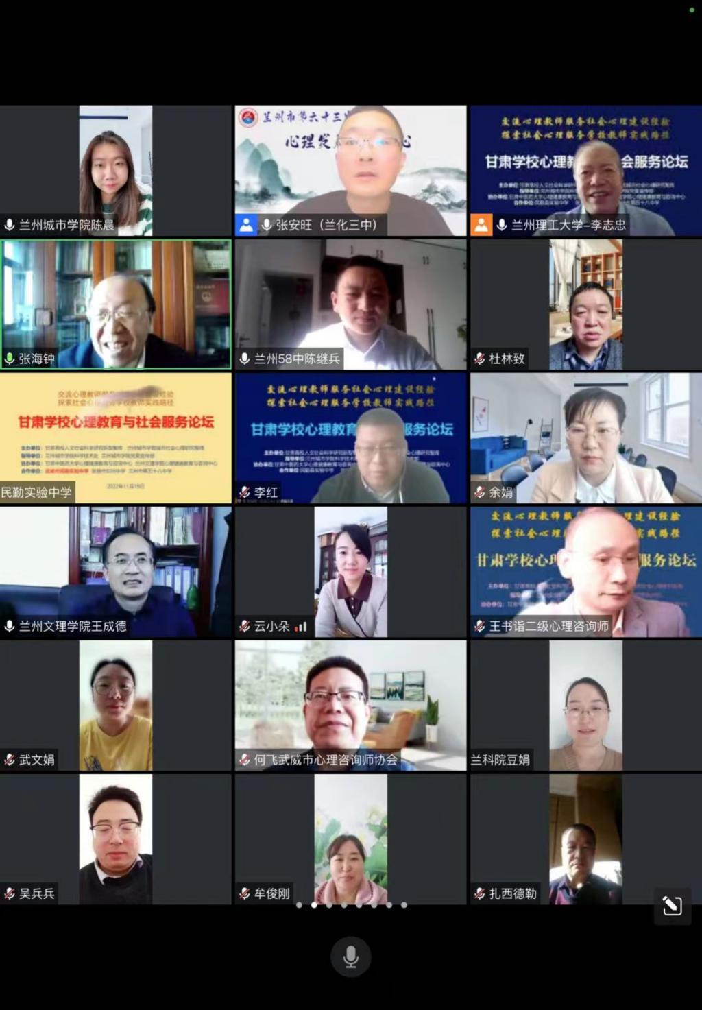 甘肃中医药大学、兰州文理学院、河西学院、陇东学院、兰州工商学院、武威市民勤实验中学、张掖市甘州中学、兰州市第五十八中学等12所大中小学心理教育服务机构和全国社会心理服务体系建设试点地区凉州区社会心理服务中心和武威市心理咨询师协会等负责同志应邀参加论坛。