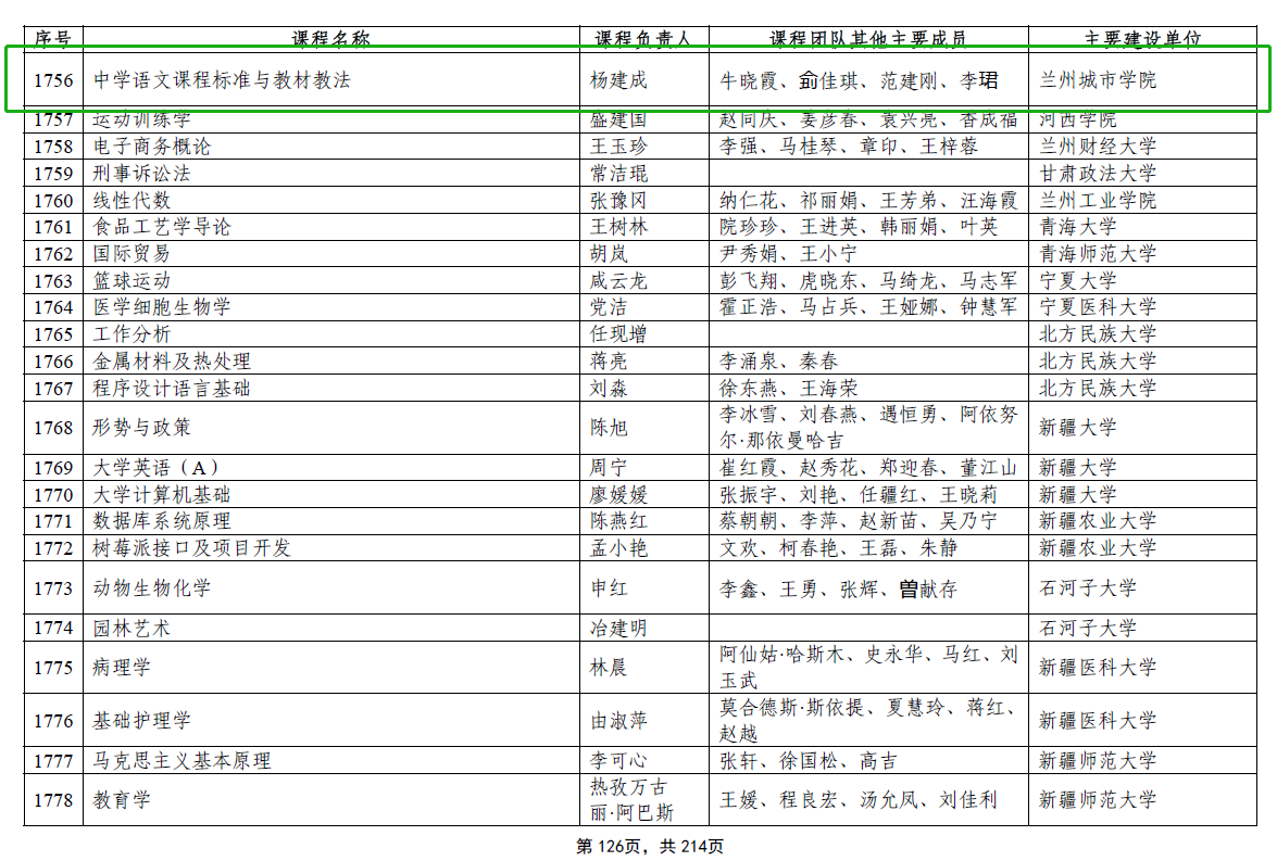 近日,教育部发布《关于第二批国家级一流本科课程认定结果的公示》,由文史学院副教授杨建成担任课程负责人,牛晓霞、侴佳琪、范建刚、李珺为团队成员的《中学语文课程标准与教材教法》课程入选线上线下混合式国家级一流课程,这是beat365课程建设的又一重大进展。