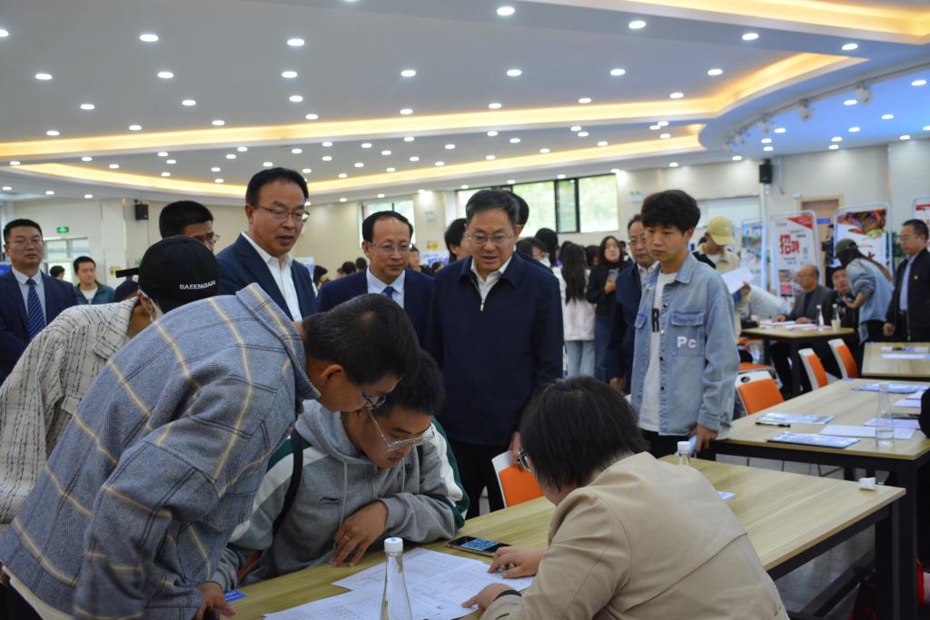 5月9日下午,武威市委常委、组织部部长关维斌,副市长陆世平带领市委组织部、市人社局、市教育局和民勤县委组织部、县人社局、教育局及部分学校、企业代表来校开展政校企合作交流活动并举办校园招聘会。校党委书记许尔忠出席活动并致辞。校党委副书记、校长曹洁主持会议。学校办公室、党委教师工作部(人事处)、招生就业处及相关二级学院主要负责人、350名毕业生代表参加活动。