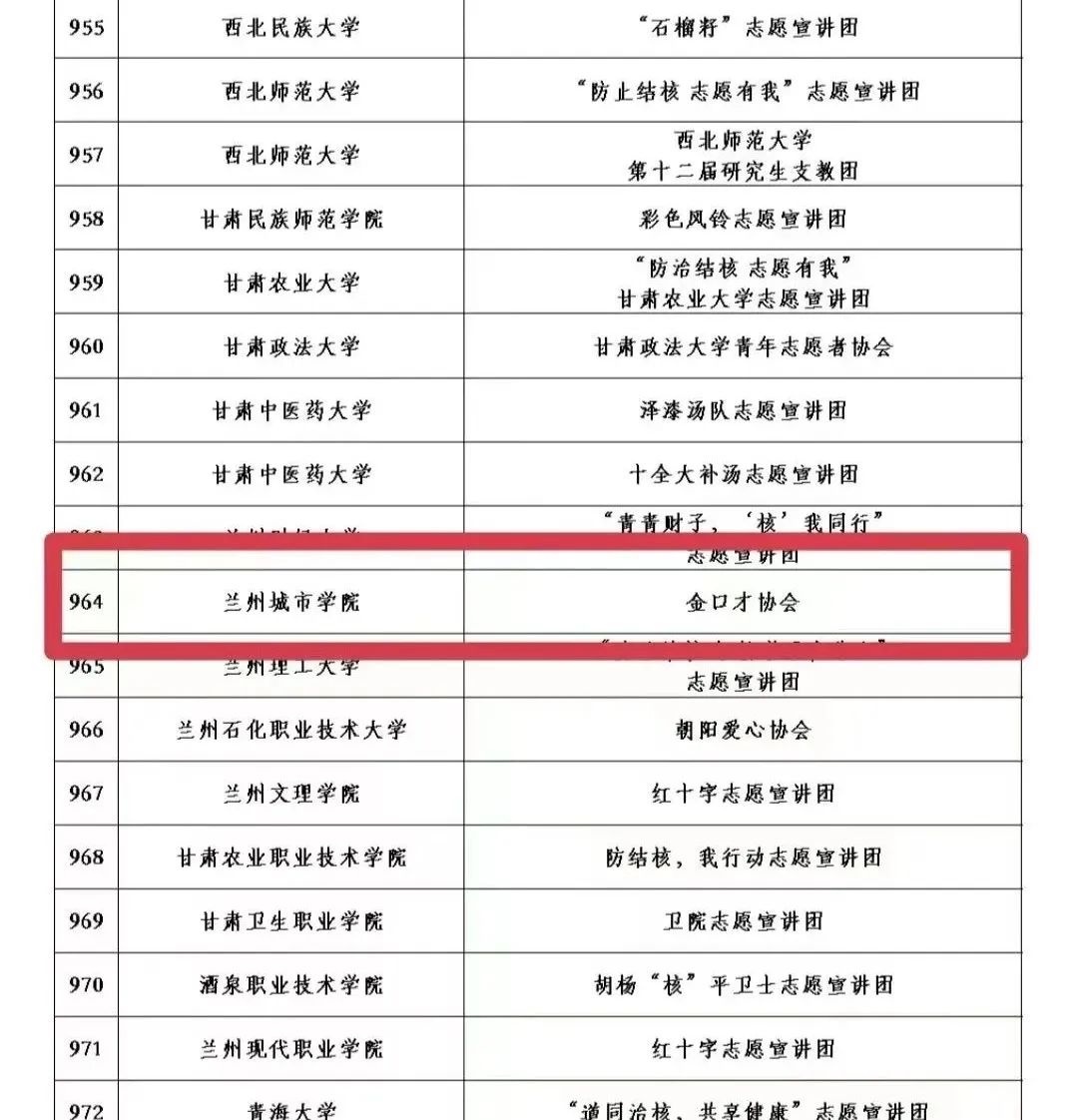 近日,团中央青年志愿者行动指导中心发布《关于遴选2023年全国大学生“两弹一星”精神志愿宣讲团的公告》《关于遴选2023年全国大学生井冈山精神志愿宣讲团的公告》和《关于遴选2023年全国大学生“防治结核 志愿有我”志愿宣讲团的公告》,beat3652个学生社团申报的5支常态化社会实践宣讲团成功入选2023年全国大学生志愿宣讲团。