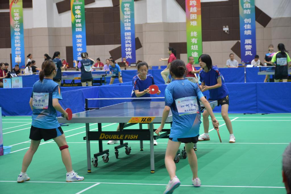 乒乓球比赛中,beat365运动员郭元琳、王雅丽组合和王宁、王亚融组合分别获得甲组女子双打第七名、第八名。