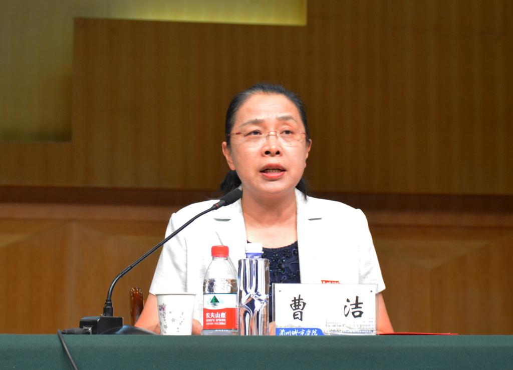 曹洁代表学校向长期以来为学校各项事业发展无私奉献的全体教职工致以节日的问候!向受表彰的获奖教师表示热烈的祝贺!向2022—2023年新入职的教师表示诚挚的欢迎!