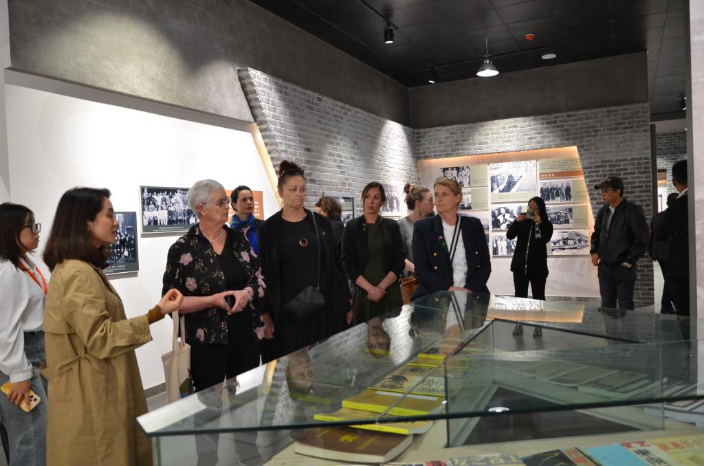 来宾先后参观了培黎展览馆、路易·艾黎研究中心、甘肃民族音乐研究中心非遗博物馆以及艺术设计学院陶艺、漆艺、首饰设计与制作和纤维艺术工作室。