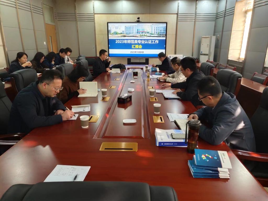 10月8日上午,学校召开2023年师范类专业认证工作汇报会,校党委常委、副校长牟录贵出席会议并讲话。幼儿师范学院、文史学院、信息工程学院院长,及分管副院长、专业负责人以及学校承担公共课教学的马克思主义学院、外国语学院、体育学院、教育学院教学副院长参会。会议由教务处处长李开明主持。