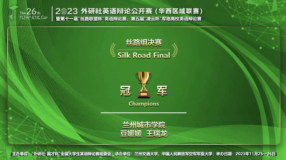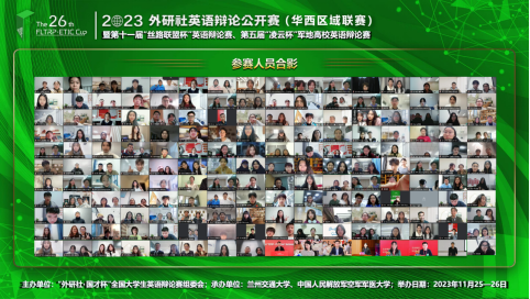 近日,2023年外研社英语辩论公开赛(华西区域联赛)暨第十一届“丝路联盟杯”英语辩论赛、第五届“凌云杯”军地高校英语辩论赛在线上举行。