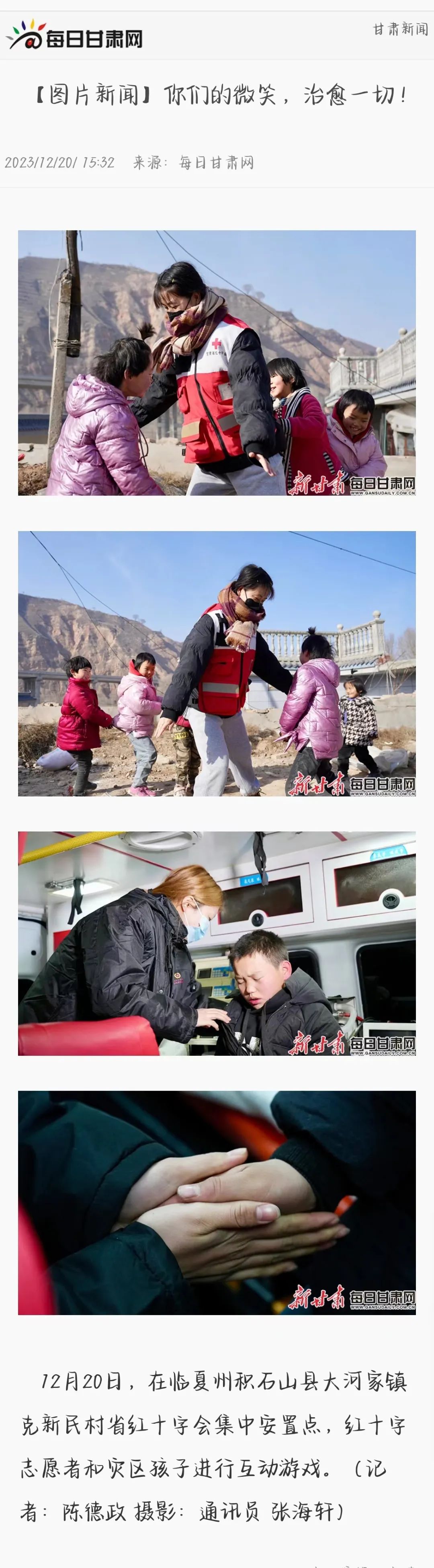 “灾难无情人有情,作为一名党员青年,我应该发挥自己的作用,积极为群众服务;作为一名退役军人,我要发挥部队优良作风,更多的为人民服务;作为一名大学生,我要积极响应党的号召,在灾难面前,尽自己的一份绵薄之力,为灾区群众奉献自己的青春力量,结合自己学习的传媒专业,用镜头记录灾难面前的大爱,给灾区同胞带来一丝温暖。”张海轩同学积极报名志愿者招募,在积石山服务受灾群众时说到。