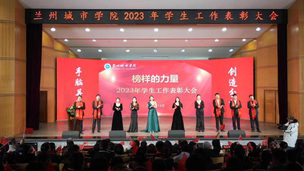 最后,音乐学院获奖学生代表分别演唱了《我们都是追梦人》和《我爱你中国》,表彰大会在全场飘扬的国旗和嘹亮的歌声中落下帷幕。