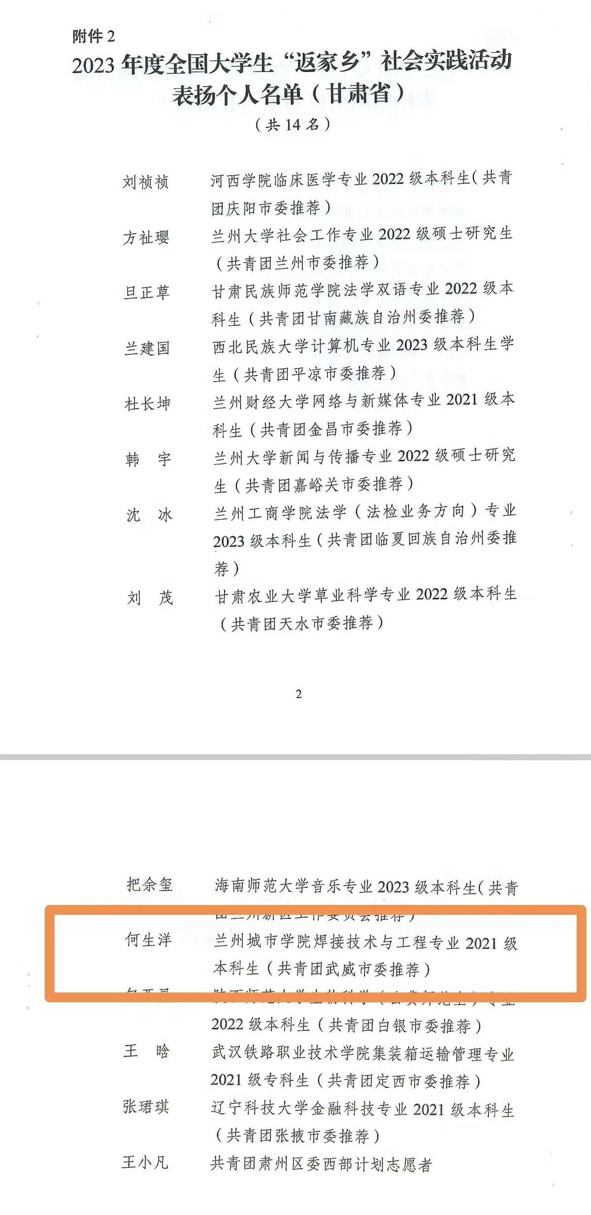 5月6日,共青团中央青年发展部对2023年度全国大学生“返家乡”社会实践活动中表现突出的组织单位、个人和特色项目予以通报表扬,beat365培黎机械工程学院焊接技术与工程专业2021级本科生何生洋在2023年度全国大学生“返家乡”社会实践活动中荣获通报表扬。